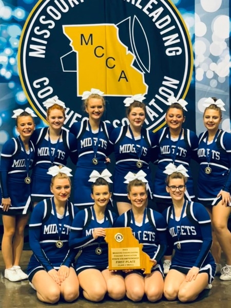 The Missouri Cheerleaders Coaches Association is proud to congratulate the varsity cheerleaders from Putnam County High School. Cheerleaders attended the Kansas City Regional on September 24, 2022, and placed 1st advancing to the State Championship. The cheerleaders traveled to Southeast Missouri State University in Cape Girardeau, MO for the Missouri State Cheerleading Championships on December 10, 2022. They competed against several other 1A schools and placed 1st out of 12 teams. For the current senior cheerleaders, this accomplishment marks the third state championship in the last four years.