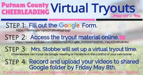 Hello! I am so excited to start our 2020 virtual tryout! After talking to several coaches, I have decided to make a few changes to our virtual tryout process. We will be having participants pre-record and submit videos of various skills along with the live virtual tryout. This decision was based on struggles that other schools have had with the virtual process. Judges can re-watch skills more than once, internet connection won't skip and freeze during important skills, and participants will be able to complete tumbling on safe surfaces (grass) and not be interrupted by bad weather.